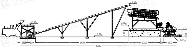 該生產(chǎn)線主要由給料機、滾筒篩 、濕式磁選機、脫水型細砂回收機等設備等組成。