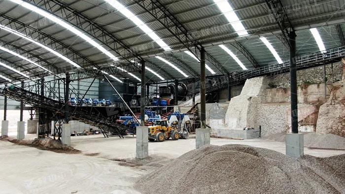 該項(xiàng)目集篩分、洗砂、污水處理于一體,各環(huán)節(jié)均采用全封閉式結(jié)構(gòu),收塵管道布置于系統(tǒng)各處揚(yáng)塵點(diǎn),避免粉塵外溢,實(shí)現(xiàn)環(huán)保生產(chǎn)。